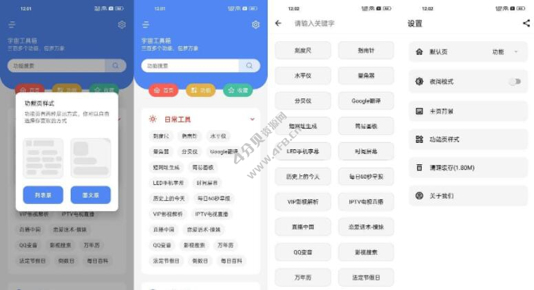 宇宙工具箱App是一款目前市面上最强的万能工具箱应用,功能包括:日常工具、系统工具、图片工具、查询工具、提取工具、计算工具、文字工具、其它工具等,部分功能用的手机设备传感器及WebView组件。