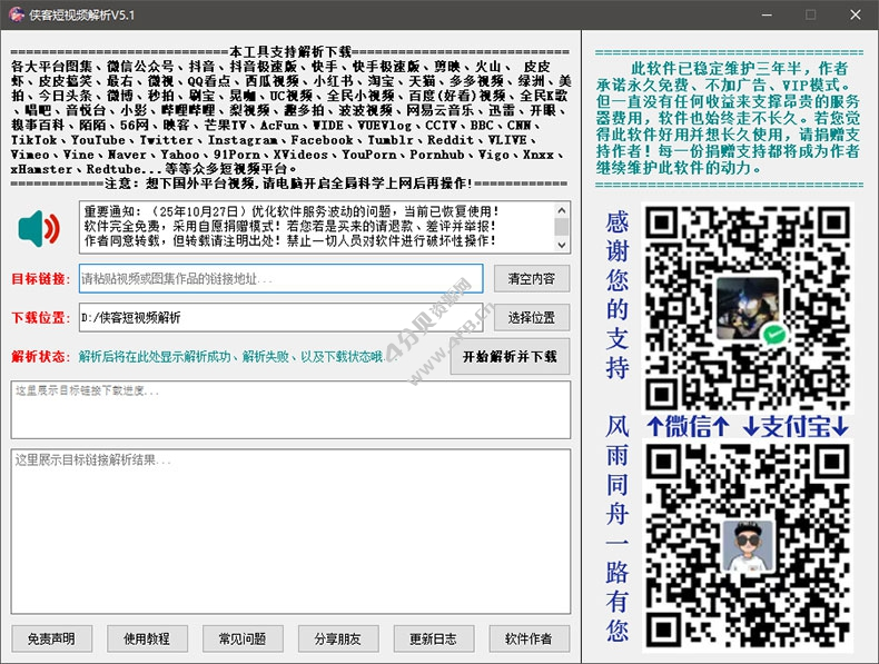 侠客短视频解析 v5.1 中文绿色版(短视频无水印下载工具)