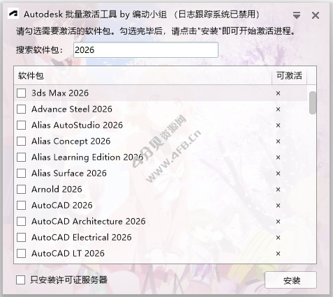 2、运行批量激活工具,勾选需要激活的软件,然后单击“安装”。