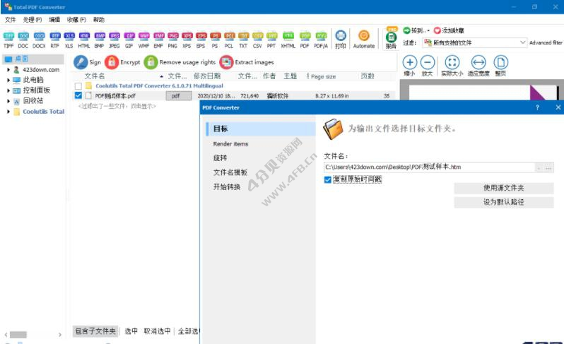 Coolutils Total PDF Converter,PDF文件转换器,可将PDF转换为Doc,Excel,HTML,PPT,文本或图像等等格式。可以批量转换PDF文档,支持PDF加密,移除PDF安全保护密码,支持的文档转换处理超过25种格式。